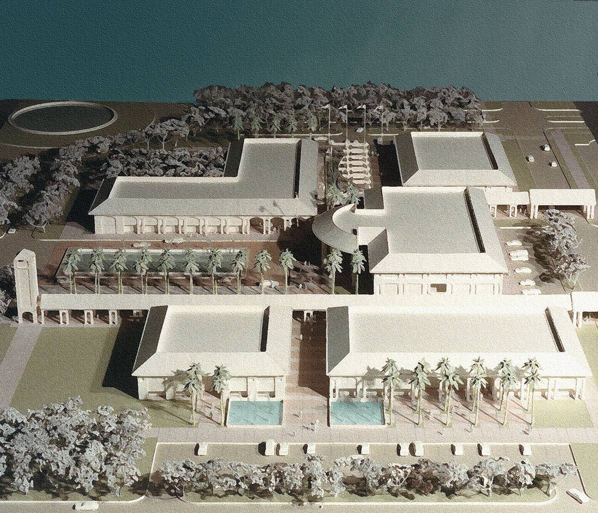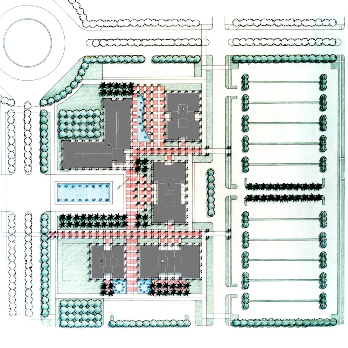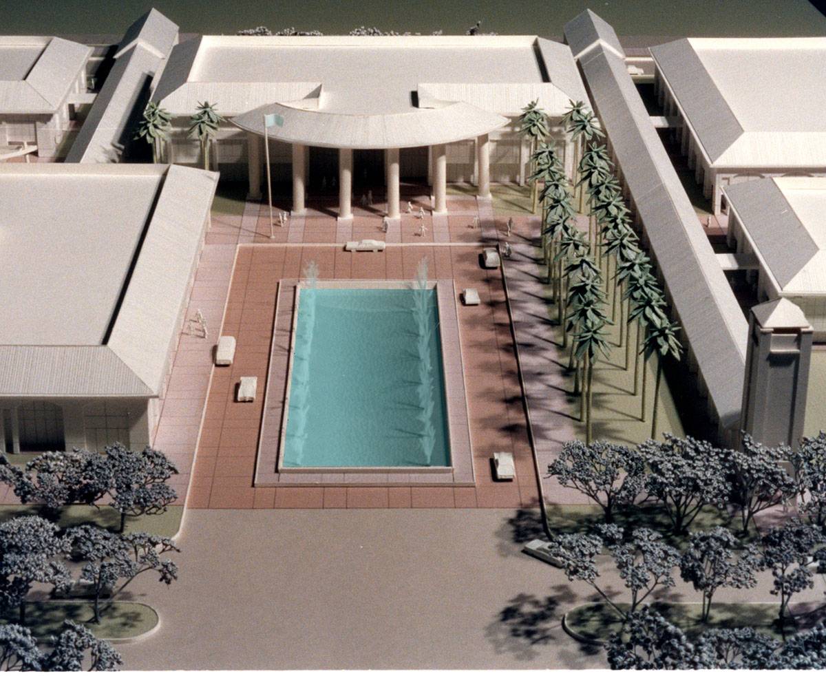Il complesso di cinque grandi edifici collegati tra di loro con piazze e camminamenti coperti è stato progettato da un team di architetti e designer facenti parte di un importante studio di architettura a Jacksonville, Florida. All’inizio della sua carriera, l’architetto Buergisser ha avuto la fortuna di poter partecipare a progetti di queste dimensioni, acquisendo così il know-how per gestire grandi progetti. La proposta architettonica ha vinto il concorso, ricevendo un prestigioso premio, ed è successivamente stata realizzata.