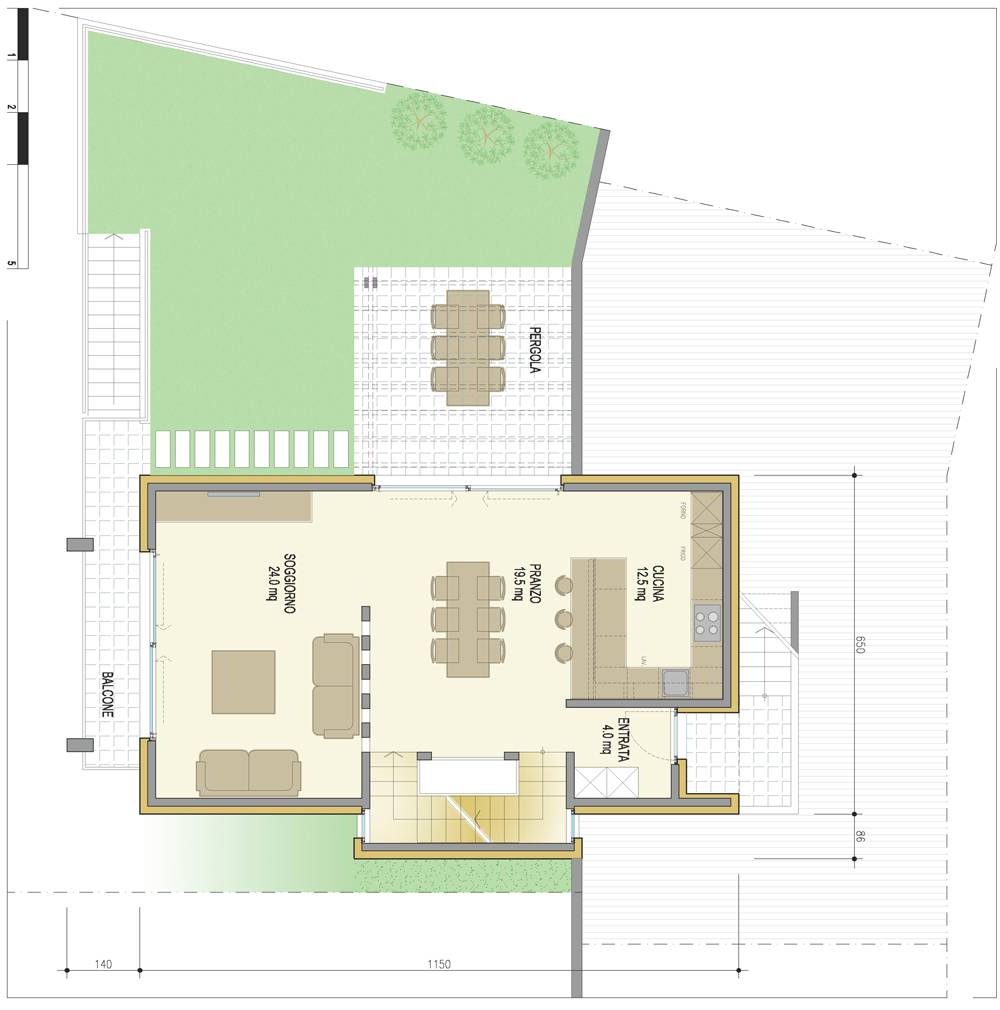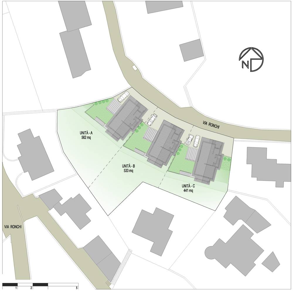 Il progetto di tre case indipendenti prevedeva un inserimento urbanistico “a ventaglio” molto particolare, che garantisse una vista sul lago aperta a 180° per ogni unità, anche dai giardini privati a livello del piano terreno. Sviluppate su tre piani, le case di 5 ½ locali erano progettate per soddisfare le esigenze di famiglie numerose e prevedevano le finiture di alta qualità inserite in un budget limitato.