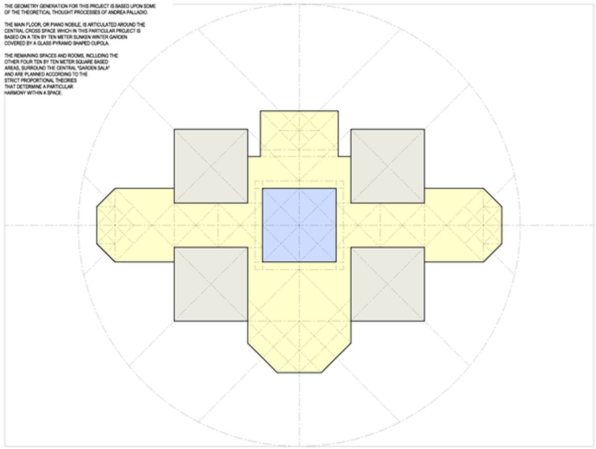 Il proprieterio del grande fondo pianeggiante nella periferia di Praga ha affidato al team di architetti il compito di progettare un’esclusiva villa di lusso destinata alla ricezione di ospiti importanti a livello internazionale. Lo stile di architettura scelto si ispira a quello di Andrea Palladio. Le suite degli ospiti si affacciano su una corte interna, protetta da una cupola di vetro, situata ad un’altezza di 10 m. Questo spazio coperto è collegato con piscina e wellness, suite presidenziale con ufficio privato, sale relax e una sala banchetti.