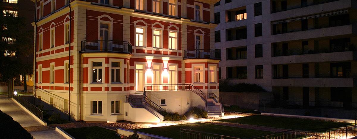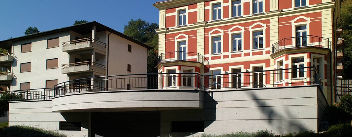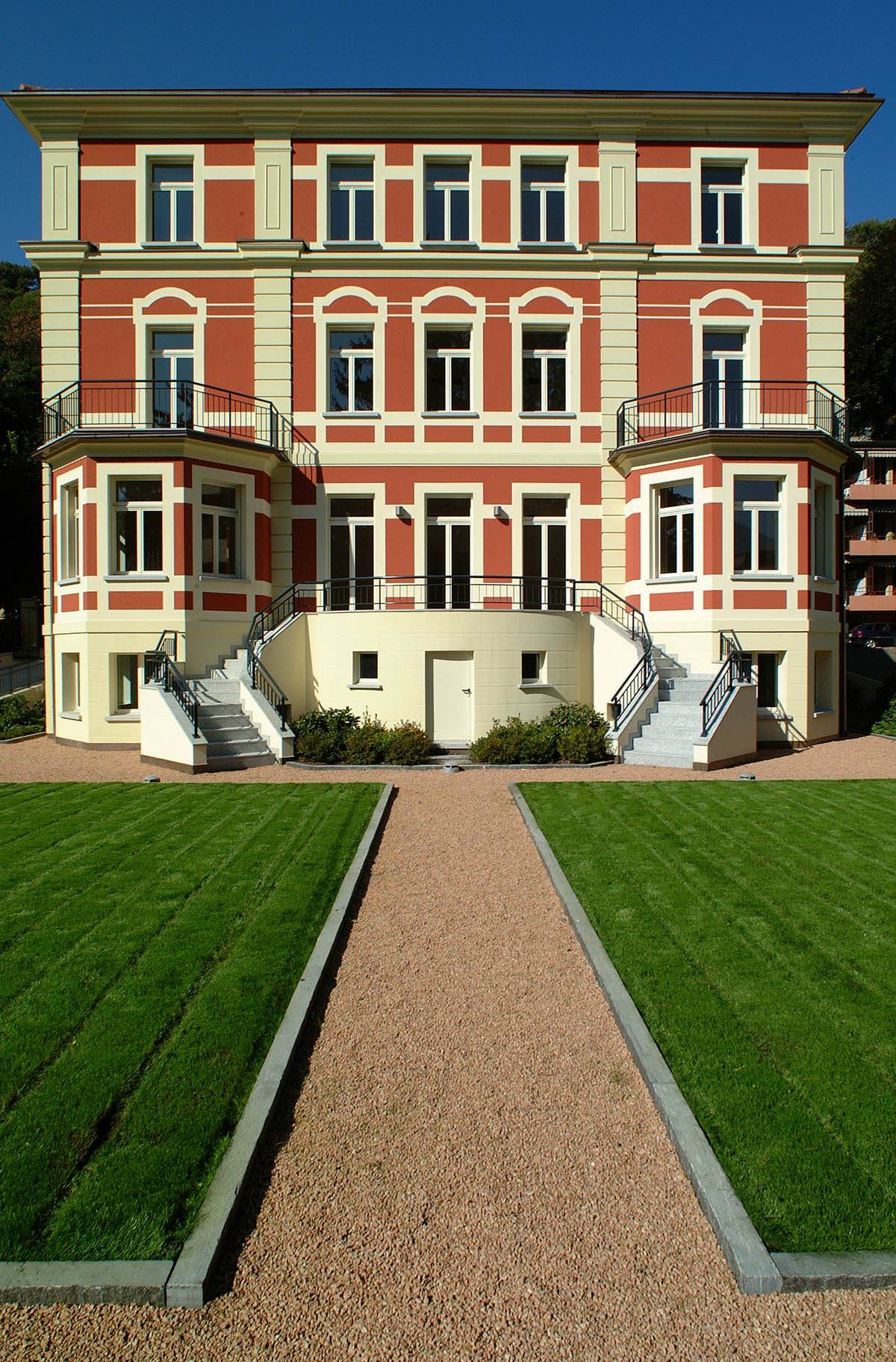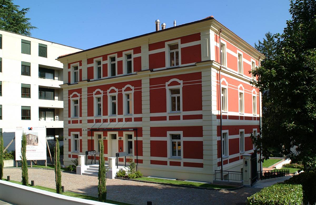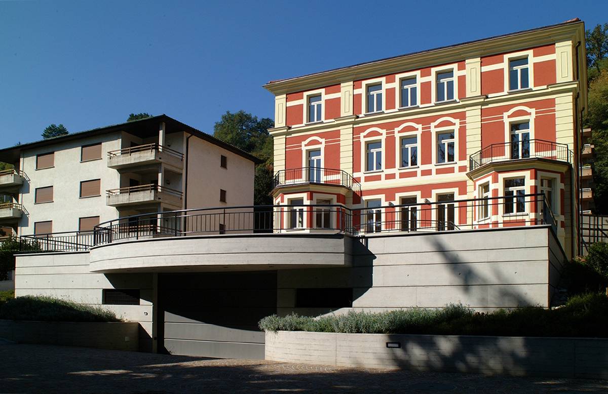 Si tratta della ristrutturazione e trasformazione completa di una villa storica del 1903 in uffici di alto standing, completi di tutte le ultime tecnologie. La soluzione prevedeva una completa demolizione interna lasciando intatte unicamente le pareti esterne a testimonianza dell’architettura di inizio secolo. Gli interni sono stati studiati per creare un ambiente di lusso destinato agli uffici di un’importante società internazionale. Per soddisfare l’esigenza di posteggi privati è stato aggiunto un nuovo volume interrato con un giardino pensile, anche la sistemazione esterna riflette l’importanza del progetto.